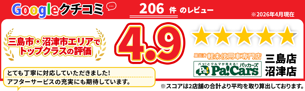 契約後の特典やサービスもとても魅力的です。次回車を購入するときもパッカーズさんにお願いしたいと思います。(パッカーズ三島店)